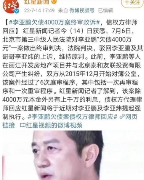 为何会突然离婚呢?许多网友推测,极有可能是李亚鹏负债一事所致。他欠下4000万债务在业内早已众人皆知,再算上利息,如同雪球般越滚越大。